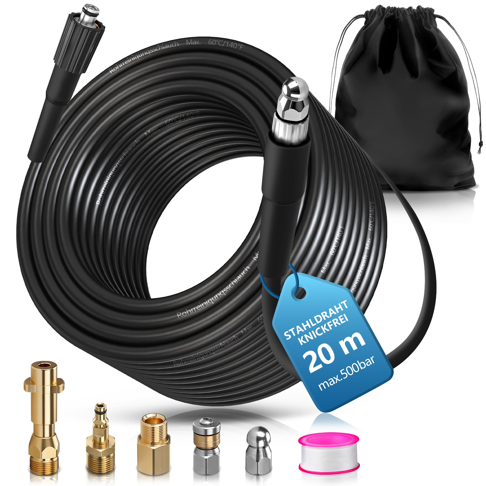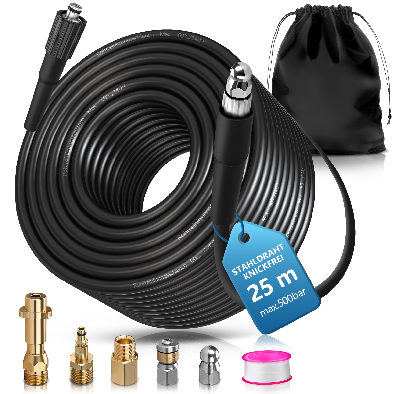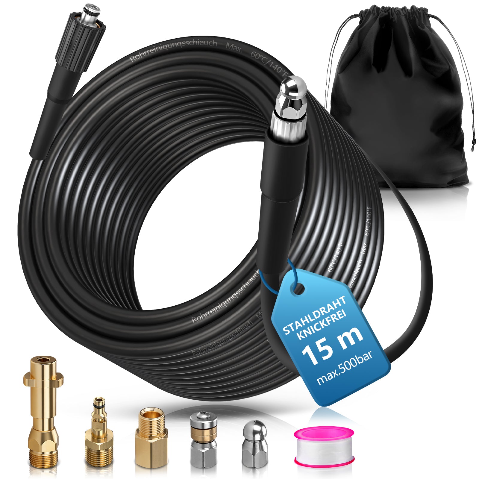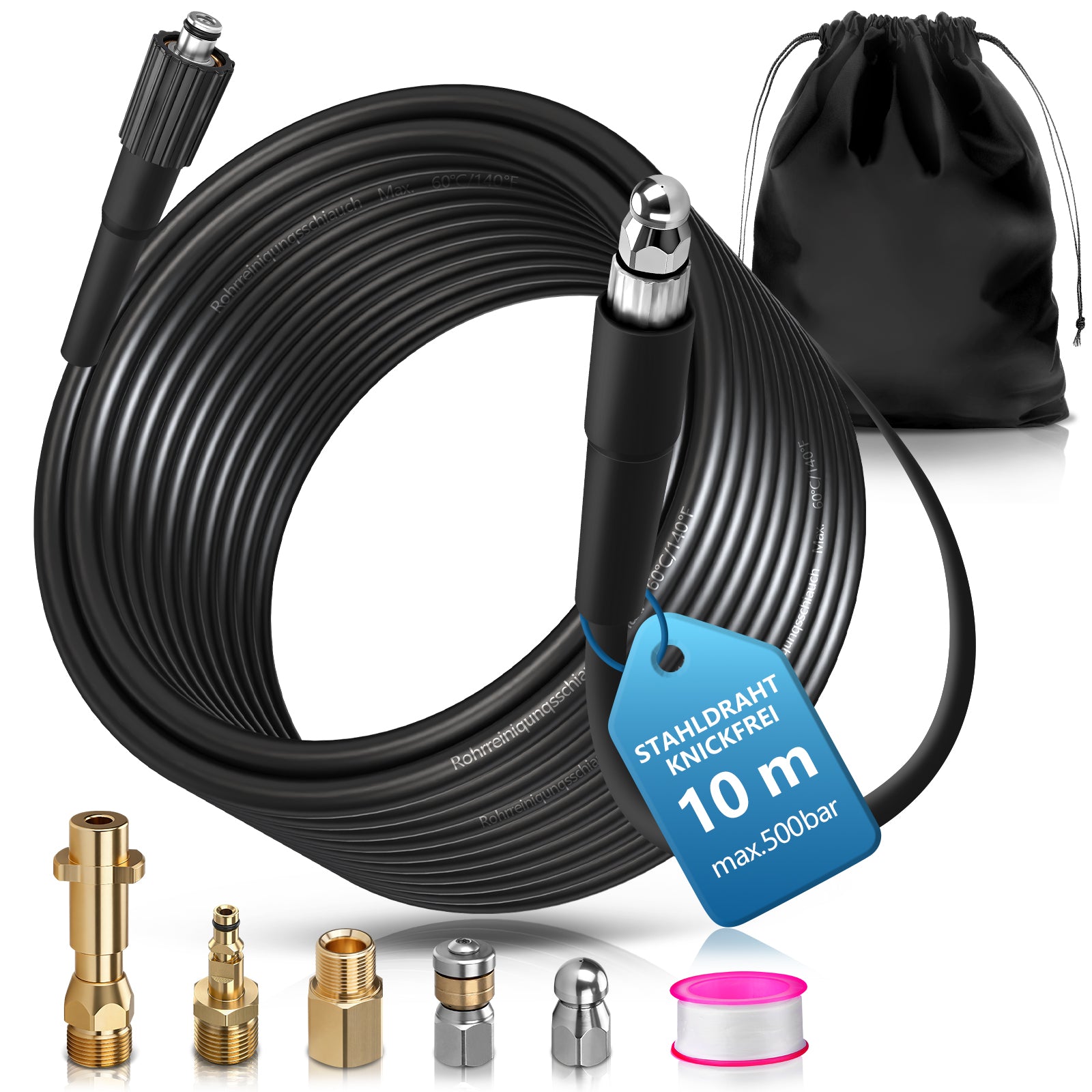 Professioneller Hochdruck-Rohrreinigungsschlauch 4-Schichten-System mit starre & rotierende Düsen, kompatibel mit Kärcher K2-K7, 500 bar